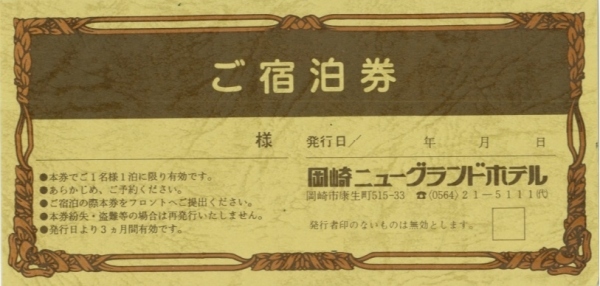 ●本券は岡崎ニューグランドホテル、グランドイン東岡崎共通の金券としてお支払いの際にご使用いただけます。