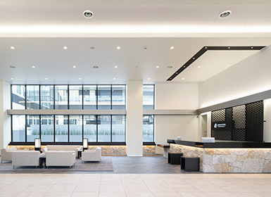 Lobby • Front is located on the 1F. Guests entering from the pedestrian deck on 3F please take the elevator down to 1F to enter the front.