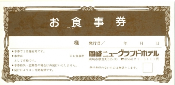 ●本券は岡崎ニューグランドホテル、グランドイン東岡崎共通の金券としてお支払いの際にご使用いただけます。