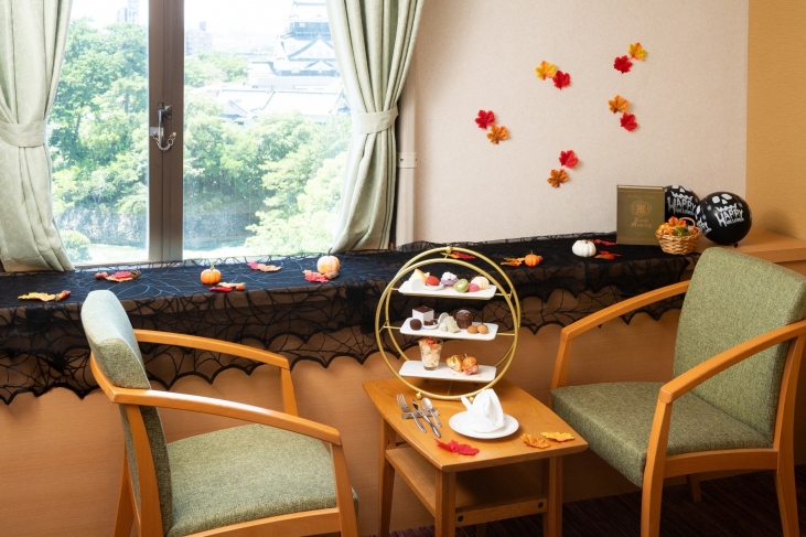 岡崎城を眺められるホテル客室又は乙川の景色を一望できるコーヒーラウンジ、